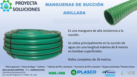 Manguera de calidad excepcional de PVC para trabajo pesado en succión y descarga de agua, soluciones acuosas, abonos, insecticidas, lodos, estiércol, pastas, productos químicos, alta resistencia al impacto y a la abrasión.